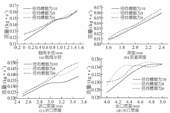圖3 徑向槽數(shù)不同時各參數(shù)對流量的影響