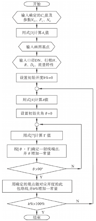 在柱塞式調節閥設計中,閥瓣的型面設計與繪制直接影響調節閥的調節特性。首先以客戶提供的管道需求流量、閥前后壓降、介質工況、管道情況等已知條件選擇調節閥的類型,再依據相應的標準(如GB/T17213.2-2005)計算與確定選用閥門的流量系數CV。再以GB/T17213.2附錄A的提示,可確定出單流路的縮流斷面的總面積和各行程的環形流路的內徑,但繪制閥瓣型面的計算量很大,手工完成繪制比較費工費時。本文提出根據調節閥的調節特性和流體力學原理建立數學模型,并運用計算機完成閥瓣型面繪制的一種方法,以減少調節特性的偏差和縮短設計與制造周期。
