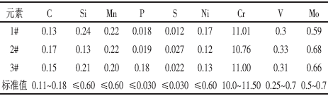 在1#、2#和3#調節閥上取樣,測試了調節閥的化學成分,分析結果如表1所示。由表1可知,3根調節閥的化學成分都符合標準B/HJ479-2006的規定。