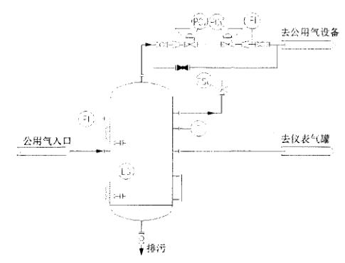 自力式調節(jié)閥在公用氣系統(tǒng)中的應用如圖2所示 ,為一個背壓閥和減壓閥的組合 ,其功能是將公用氣罐出來的公用氣穩(wěn)定在一個范圍內(nèi),海上平臺常取500~800 kPaG 。